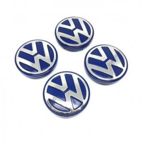 Volkswagen Kromlu Geçme Jant Göbeği Mavi 4'lü 57/65mm